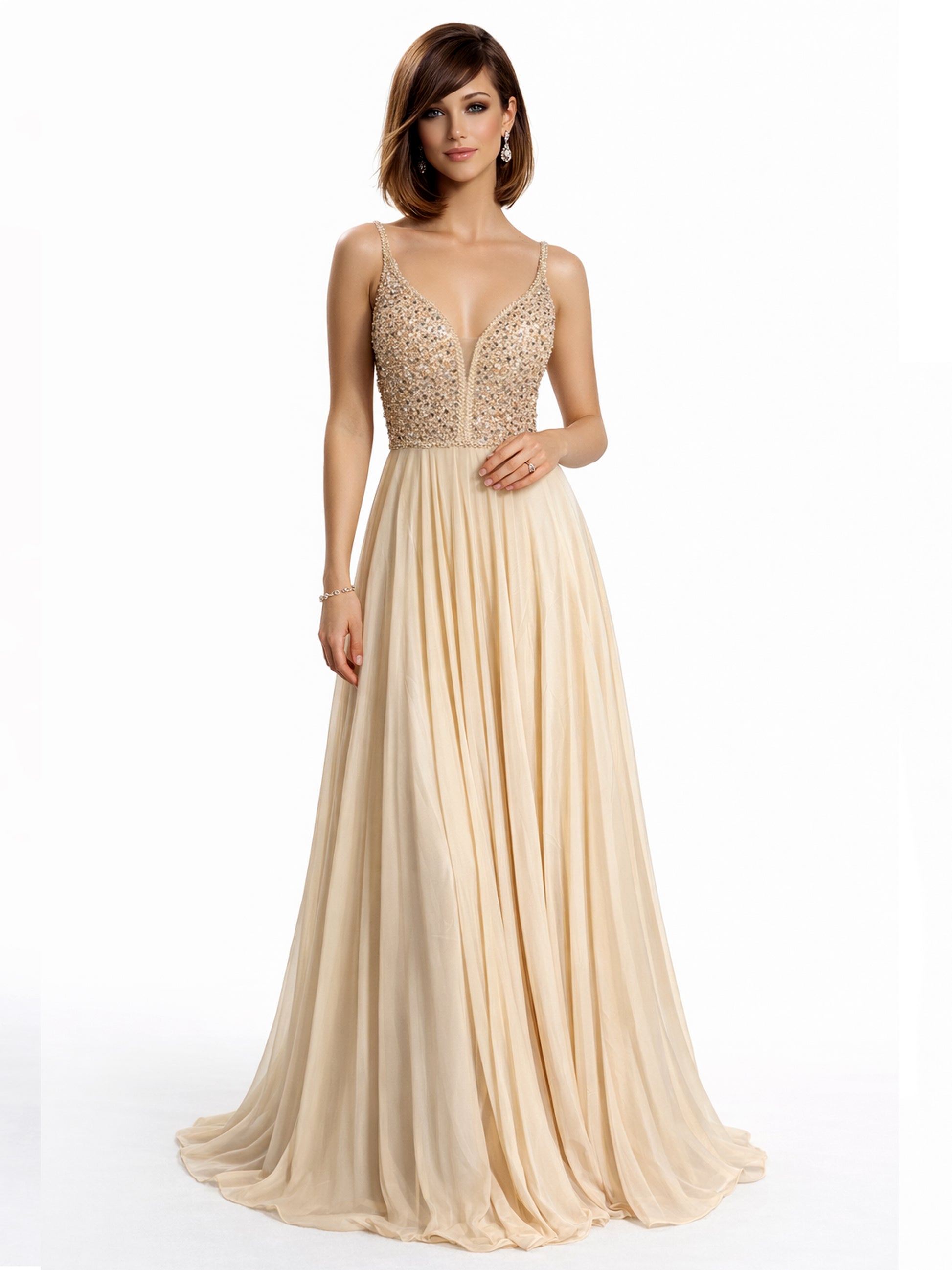 Style 2502 - Creme / Dark Green Dress